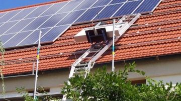 Vhodný pro trasport materiálu na střechu. Výtah umí překonat zlom mezi fasádou a náklonem střechy.